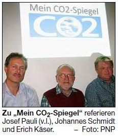 Grund genug für das Stammtischteam Erich Käser, Josef Pauli und Johannes Schmidt, alle Bürger einzuladen, unter dem Motto „Mein CO2-Spiegel“ einen persönlichen Fußabdruck zu erstellen. Schließlich verbuche statistisch jeder Einwohner in Deutschland knapp elf Tonnen CO2 im Jahr.